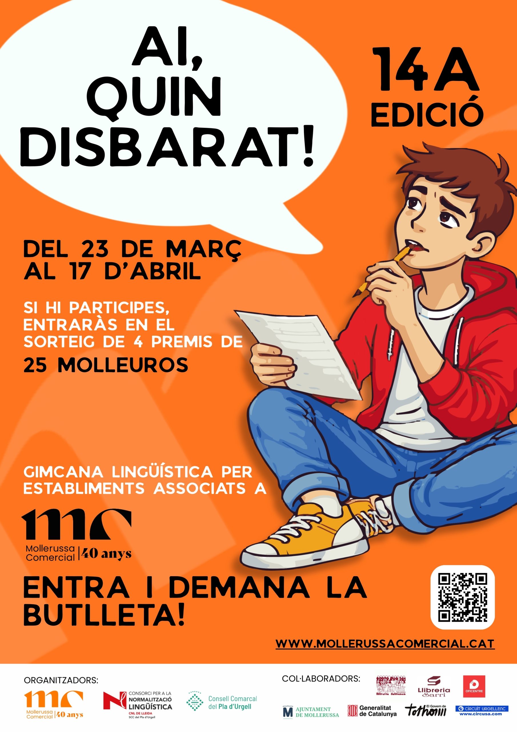 Als aparadors dels establiments participants hi trobareu un embarbussament amb una errada ortogràfica. Haureu de descobrir quina és la paraula incorrecta i escriure-la correctament al lloc corresponent de la butlleta.