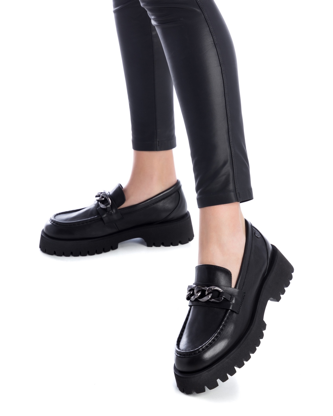 Mocassí amb cadena d’adorn i la sola de goma dentada amb plataforma.